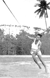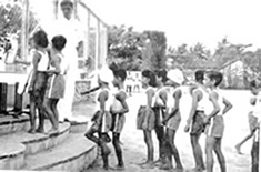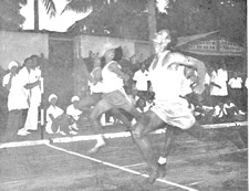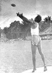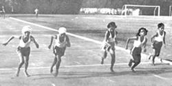 The programme lasted till the 22nd August. There were the usual events in running, jumping and throwing as well as the Pentathlon and Decathlon. The former was a new event in the series. Members from all groups took part and in each item, event-groups were made according to the rated or tested capacity of the entrants. The largest number of such event-groups was in the Sprints where there were 14 groups from 200 entries. The Pentathlon was in two sections, A & B and the Decathlon was in one group only. The little ones of Group A. I however, had their own sub- groups, totaling 14, with events of sprinting, jumping and throwing. The total number of entries was 340. On the last day of the Athletics competitions proper there were the 4 x loom and 4 x 400m Relay races. In the former, 36 teams competed and 8 teams in the latter.. After this there were the Tug-of-War competitions |