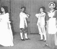 During this quarter we were treated to a large number of entertainments, more than ever before. Early in the quarter, the Dramatic class, French section, staged Moliere's well-known play "Le Bourgeois Gentilhomme". There was only one show on the 29th August and as the accommodation at the Theatre is limited to about 1400 we could only invite a few outside people as the Ashram members alone were about 1300. These visitors included the Chief Commissioner, Pondicherry, the French Representative in Pondicherry and the American Vice-Consul at Madras. The play was very well received even by those who do not know French. A number of shots from the play are shown in this issue. On Durga Puja day we heard at the playground a recorded programme of hymns and invocations and verses from Chandi set to music by Sunil and party. The Navaratri was celebrated by the Gujerati students giving a programme of folk songs and dances. Excursions