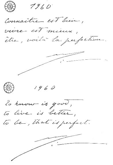 Mais long est le trajet, ardu le labeur avant que nous ne puissions Le regarder avec des yeux qui voient la vérité, et plus long encore et plus ardu doit être notre effort si nous voulons nous reconstruire à son image véritable. Le Maître des œuvres ne se révèle pas tout de suite au chercheur. Certes, c'est sa Puissance