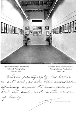 Le 15 août s'ouvrit dans notre salle d'exposition le Huitième Salon International de Photographie de Pondichéry. Il y avait 1068 exposants, de 32 pays différents; parmi les photographies proposées, 105 furent retenues pour l'exposition. L'Autriche a fournit le plus grand nombre avec 21 pièces; l'Inde vint seconde avec 18 pièces et Hong-Kong troisième avec 10 pièces.