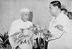 Un bouquet pour le Samadhi de Sri Aurobindo's