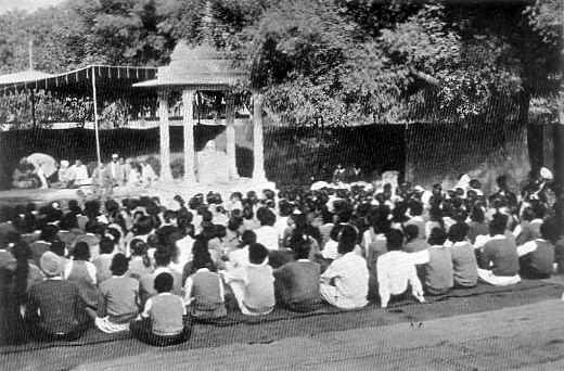 "Grave and silent — I think without saying a single word— Mr. Aravinda Ghose took the chair, and sat unmoved, with far-off eyes, as one who gazes at futurity. In clear, short sentences, without eloquence or passion, Mr. Tilak spoke till the stars shone out and some one kindled a lantern at his side..." — Mr. Nevinson (The New Spirit in India)