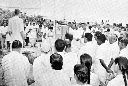 visite au Centre d'éducation. Il assista le soir aux activités sportives. Ensuite eut lieu une réunion avec les professeurs et les étudiants, où il fut discuté des buts et objets de l'éducation et des idéaux poursuivis par le Centre. Le lendemain matin, M. Saiyidain visita quelques classes, notamment les classes de Libre progrès où les étudiants ont la responsabilité d'organiser leur propre travail. M. Saiyidain était accompagné de M. H. S. S. Laurence de l'Institut d'État de l'éducation, à Madras; tous deux ont manifesté le plus vif intérêt à notre travail.