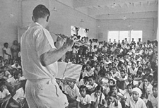 Nos élèves ont joué devant les délégués et invités, une pièce dansée, "le Rythme éternel", ils ont ensuite présenté quelques chants, suivis d'une dramatisation construite sur une des histoires de la Mère, "le Sentier de tout-à-l'heure". Des allocutions du Pr Deshmukh et du Pr Gokak à nos élèves furent suivies d'un repas pendant lequel ils discutèrent en commun de questions pertinentes.