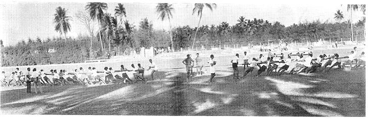 Le 13 août, nous avons assisté à une démonstration de force physique, par Shrî Manohar Aich, "Monsieur Univers" (professionnel de y classe), en 1952, qui détient actuellement le record de "World Strand Pulling", et par Shrî Jagannath Das.