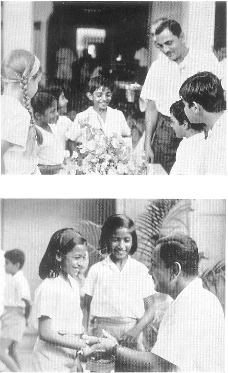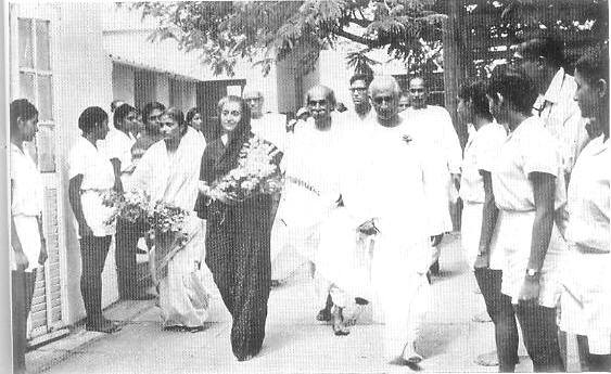 En plus de Mme. Nandini Satpathy, M. Jatti, Lieutenant-Gouverneur de Pondichéry et M. Farouk Maricar, Ministre en chef de l'État de Pondichéry, accompagnaient le Premier Ministre pendant sa visite de l'Ashram.