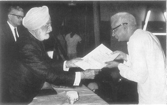 Syt, Ujjal Singh, Governor of Madras, presenting the Award of the de luxe Centenary publications |