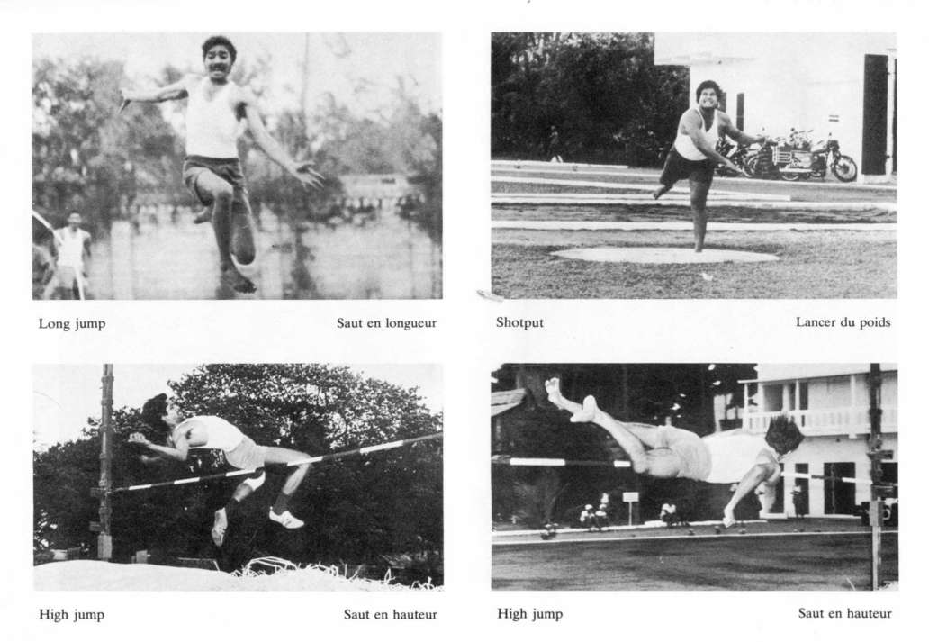 saut en longueur, d'autres à la course, à la course à cloche-pied ou au "ramper".